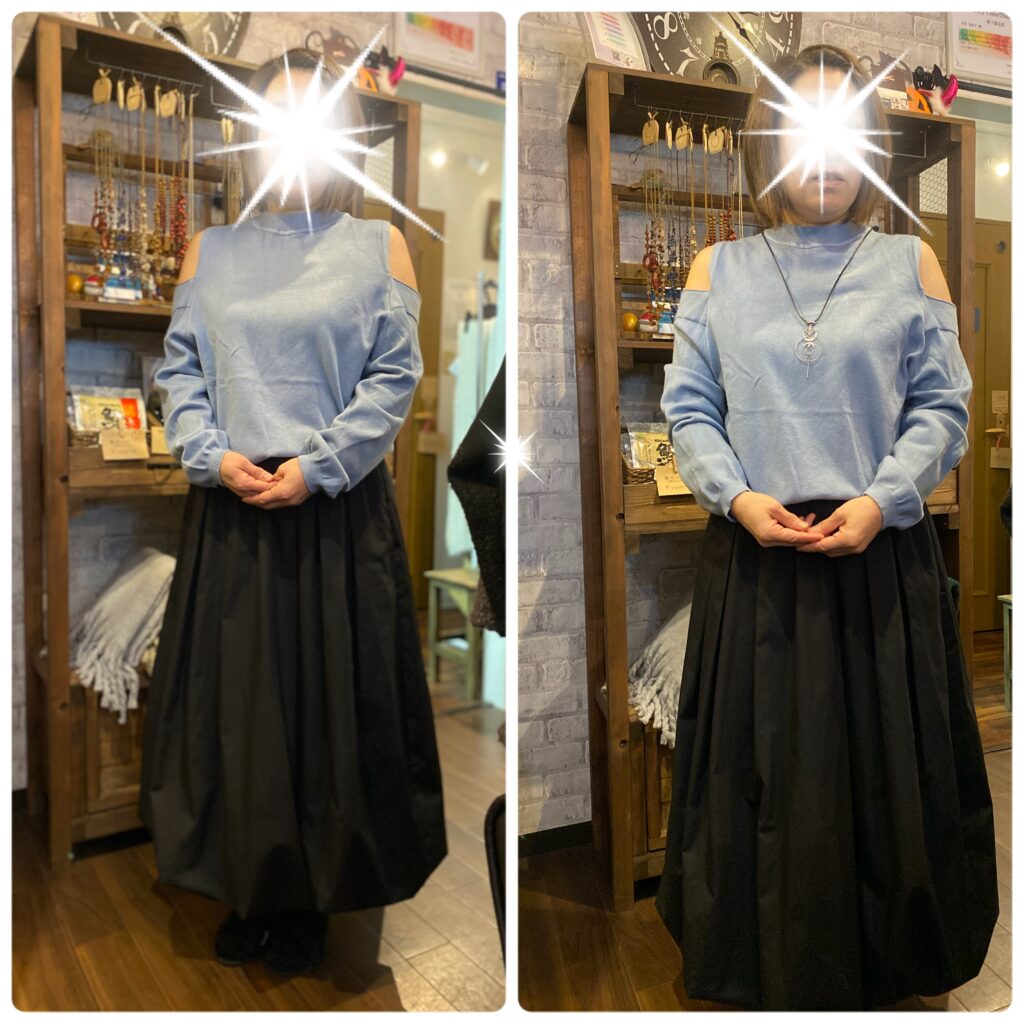 そこでご提案したのが、水色のニット